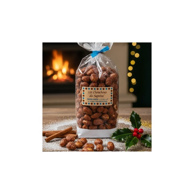 Les Chouchous du Suprême 150G" är en klassisk fransk konfektyr – jordnötter perfekt överdragna med ett tunt, krispigt lager karamell. Dessa handgjorda läckerheter tillverkas traditionellt i en kopparkittel, vilket säkerställer en exceptionell karamellisering som är både krispig och smakrik.