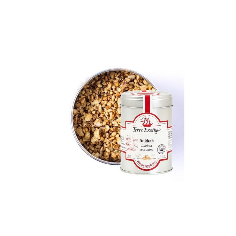 I Kairo doppar man traditionellt bröd i olivolja och sedan i dukkah, enkelt och gott till aperitifen! Man kan även strö över lite dukkah på sallader och på ångkokta grönsaker eller använda den i marinader för grillning av köttspett.