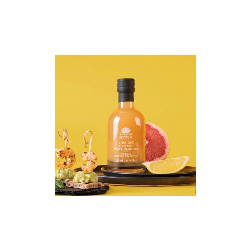 Ingredienser: alkoholvinäger 43%, citron/grappefruktpuré 36% (citron 16%, rosa grapefrukt 16%, apelsin 12%), socker, förtjockningsmedel: pektin.